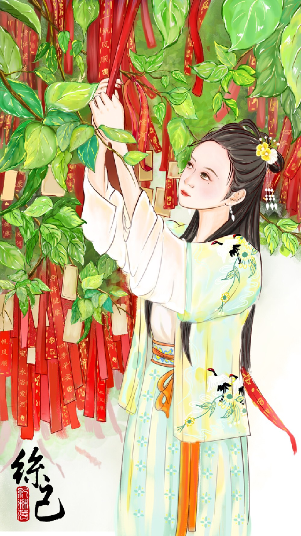原创插画,灵感来自甘坑古镇祈福有感